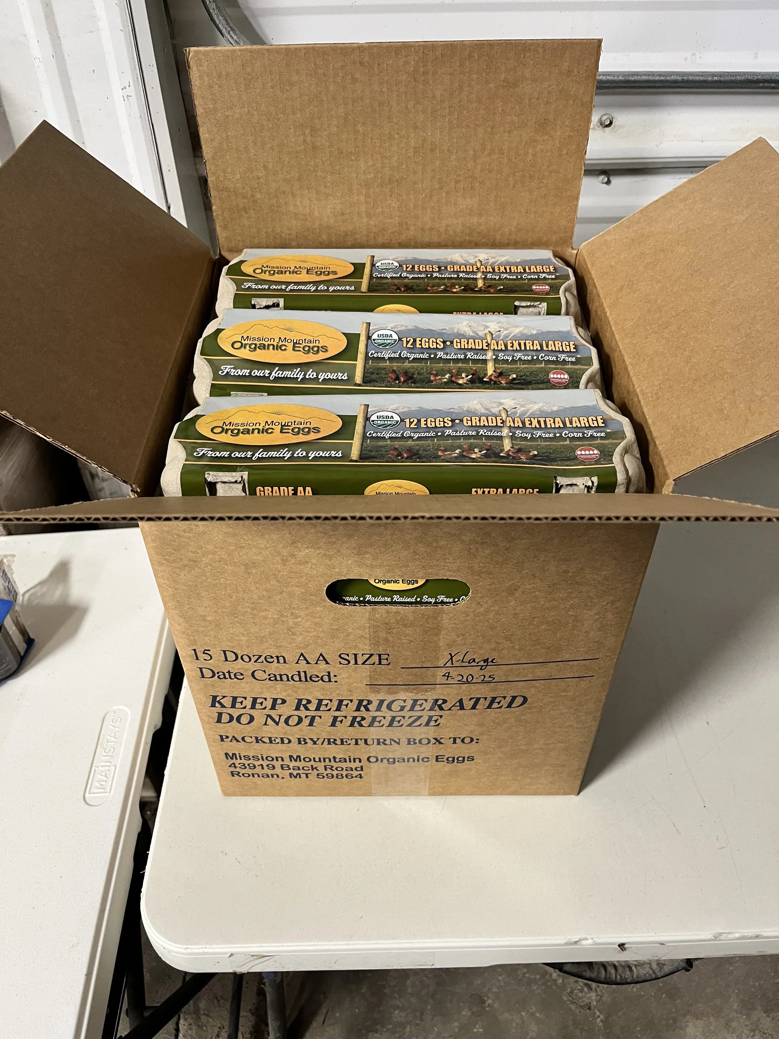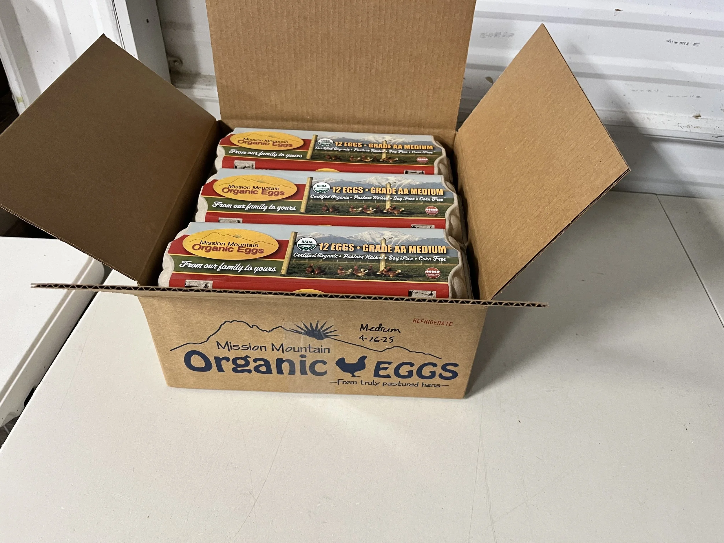 25 dozen box of eggs in 30 egg flats. Certified Organic, soy free, and corn free. Available for pickup only. Shipping not available.
